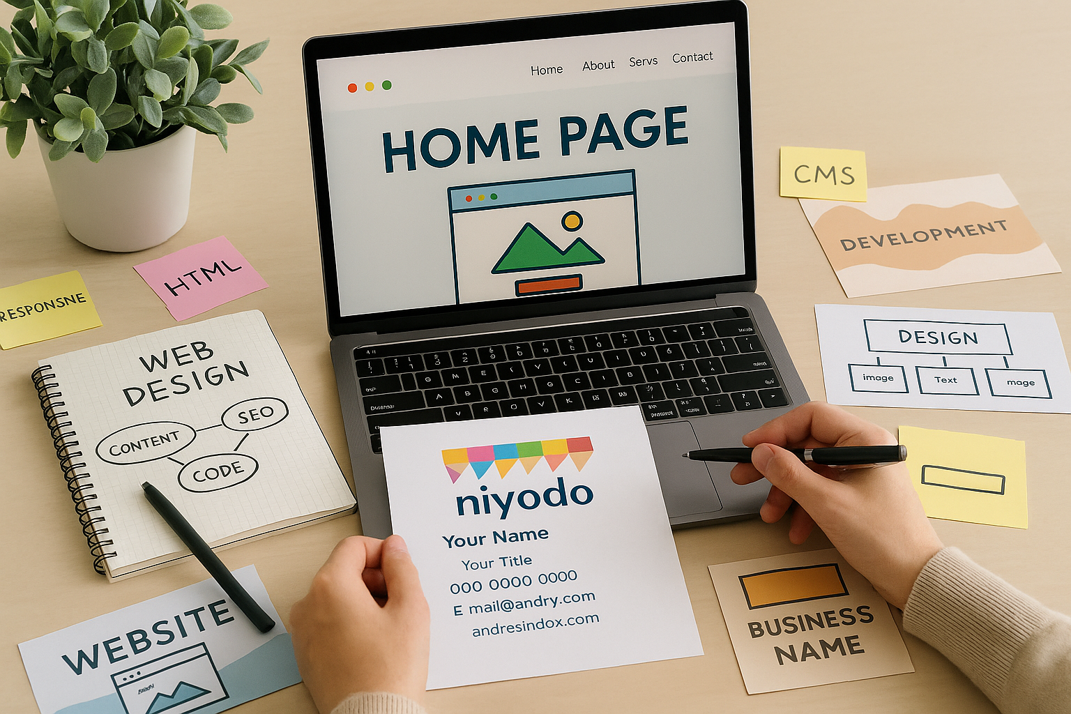 サイトとおそろいの名刺づくりも行っております。名刺は出会いの第一印象。サイトと雰囲気を合わせることで、やさしく心に残る一枚を作ります。統一感がお客さまとのより一層の信頼を育みます。